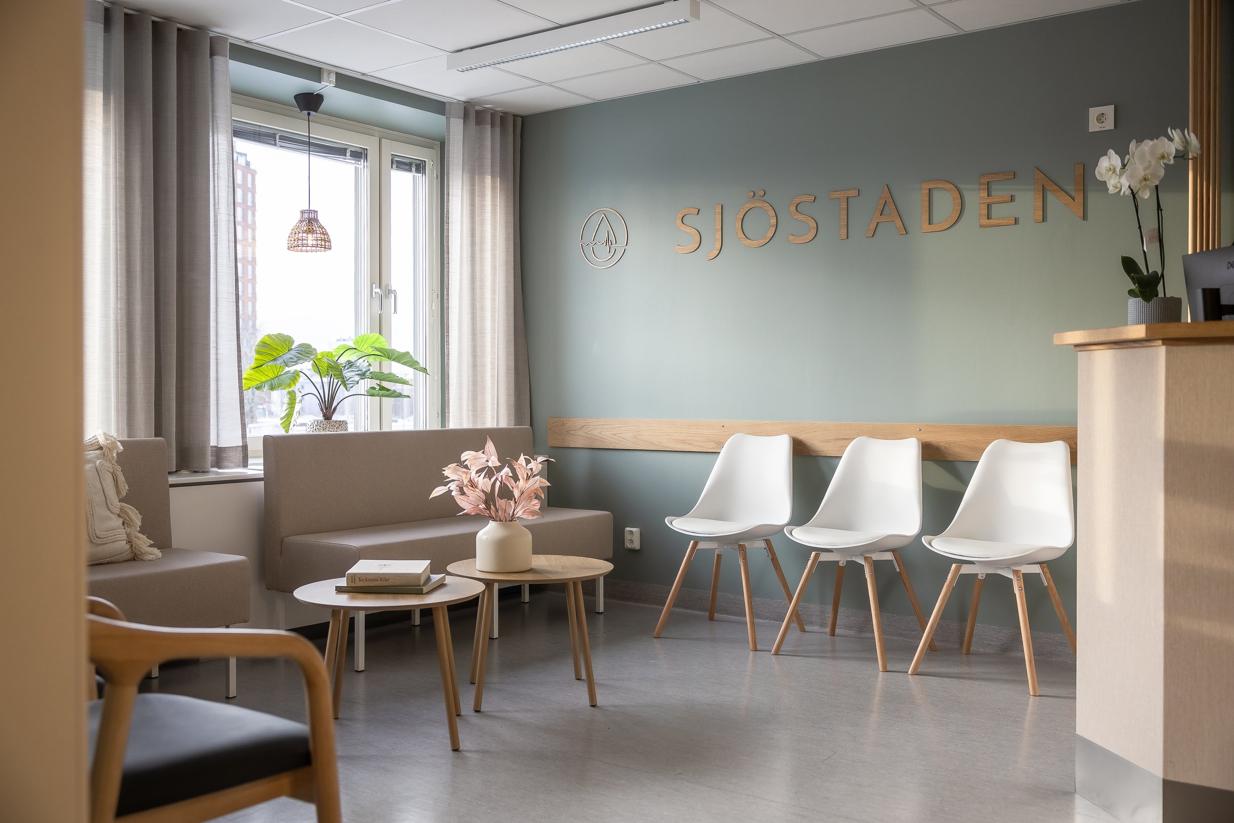 Sjöstaden HälsocentralPrivat hälsocentral i fullriggaren där vi tagit fram inredningskonceptet med färgsättning och materialval