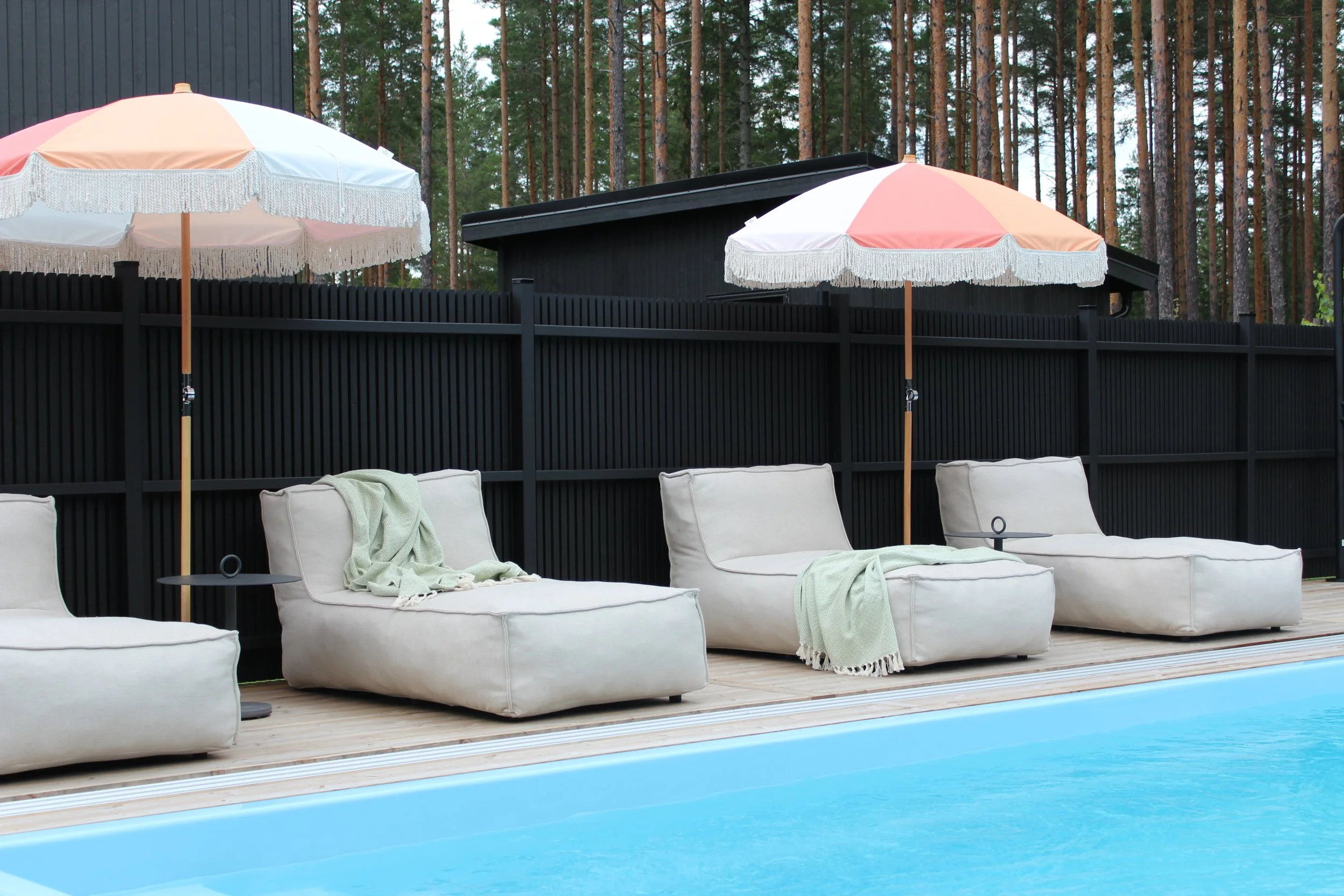 Utemiljö SkriftsgatanVid den här nybyggda villan med pool och takterass skapade vi en härlig utemiljö med färgglada detaljer.